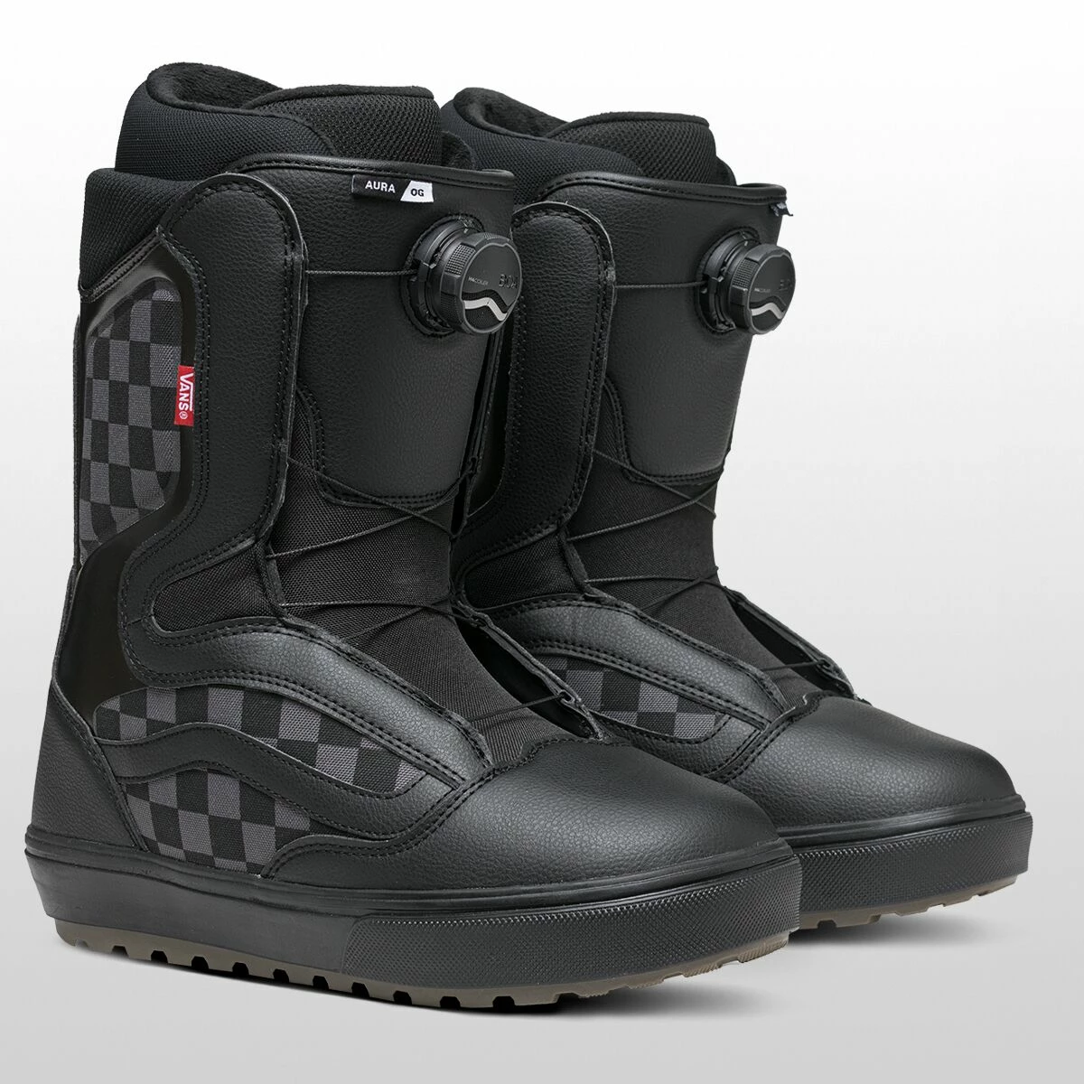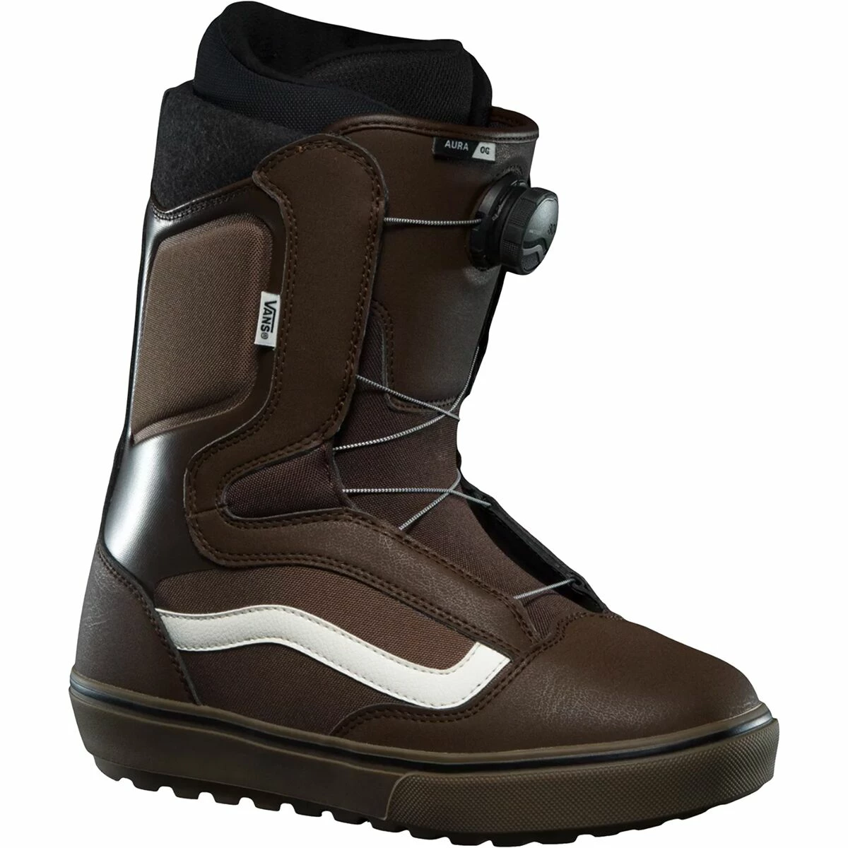 The Vans Aura OG Boa Snowboard Boot takes comfort, convenience, and style to the next level. The Boa dial easily locks in the perfect fit every time in mere seconds. Its medium flex is playful yet supportive, and the V1 UltraCush liner is heat-moldable for a custom fit. The liner also features Smartwool for temp-regulating comfort. The single-density PopCush footbed provides cushioning where you want it and support where you need it, and the V1 Waffle Lug outsole uses strategically-placed rubber in the most high-wear areas to ensure long-lasting durability and traction.