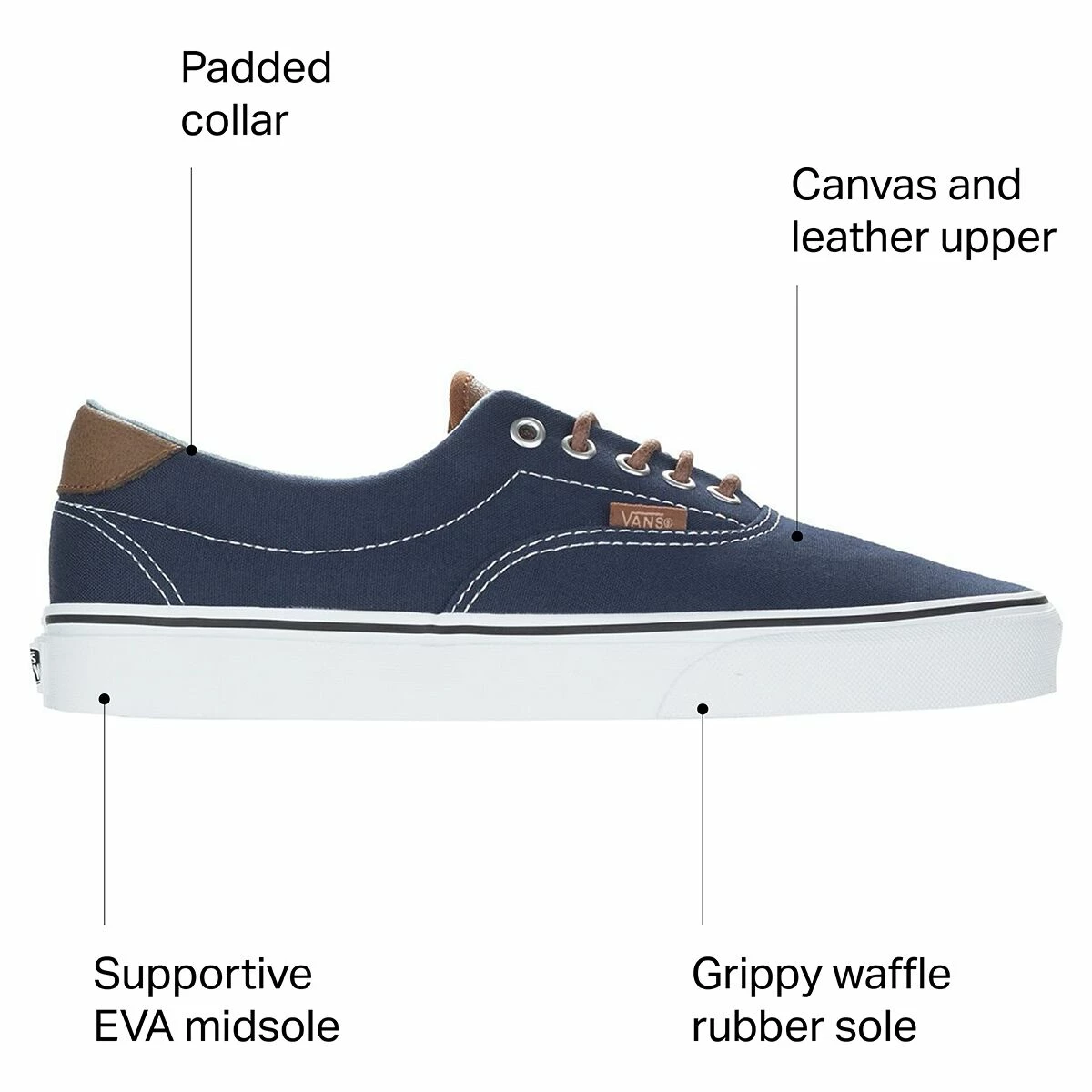 The Vans Men’s ERA Shoe is an all-time favorite of skaters everywhere. The ERA 59 keeps it simple but swanky with its low-profile suede uppers. Vulcanized construction makes these shoes tougher than a rhinoโs hide. Slim-fitting uppers give the ERA 59 its signature style, and EVA midsoles cushion and absorb shock on hard impacts. Trade the pins and needles for sighs of relief after those big drops.