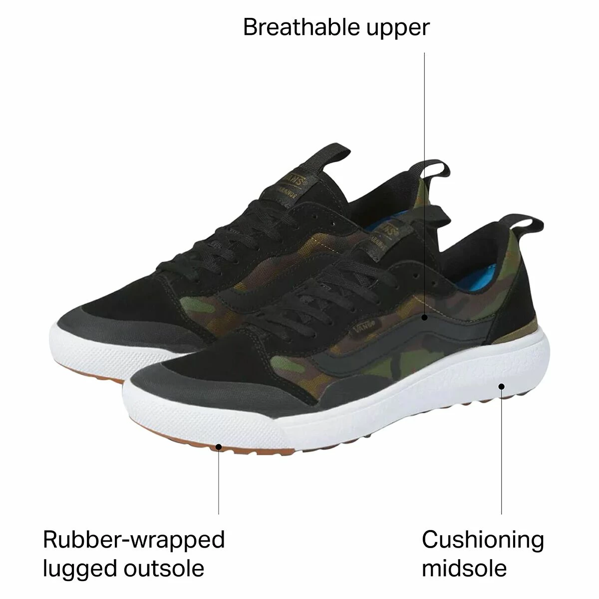 When the skatepark or the boardwalk is calling our name we lace up the Vans Ultrarange Exo SE Camo Shoe. These kicks balance support and padding for skating with breathability and comfort for casual wear.