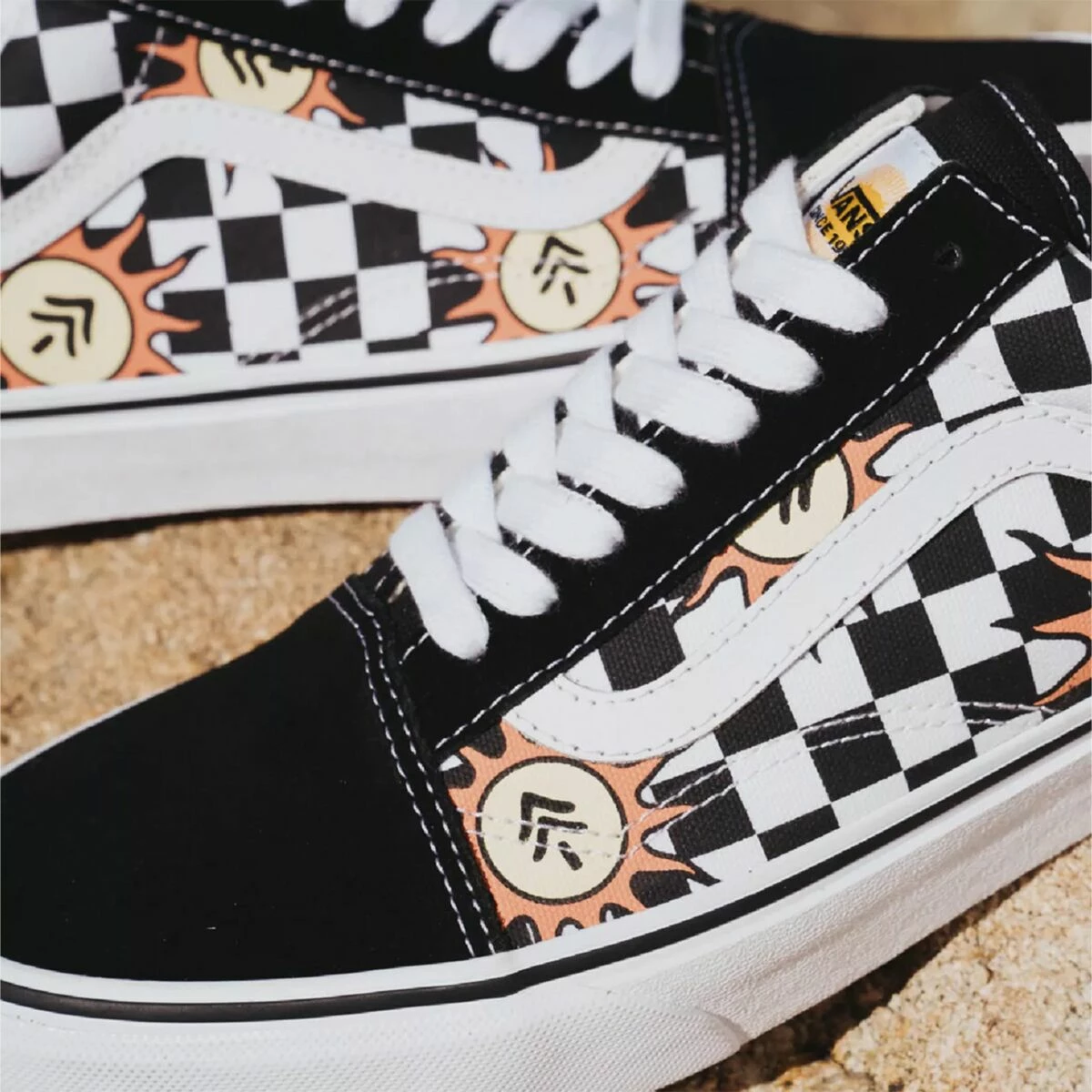 - Suede and canvas uppers with iconic Vans checkers and sunshiny style